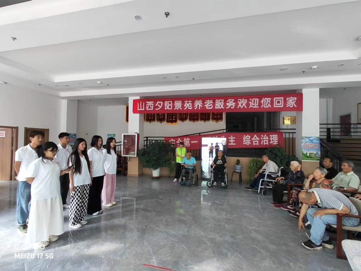 下午,实践队员与企业人员一起走进山西夕阳景苑养老服务中心慰问老人,了解老年人的生活,开展志愿服务活动。养老院负责人表示“养老院的老人十分喜欢青年人的到来,希望更多年轻的志愿者能够来开展活动,陪陪老人聊聊天说说话,养老院需要年轻人的气息来感染。”