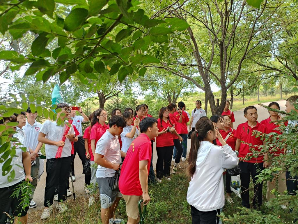 实践队员们分组进行,每组分配一定数量的采摘工具。队员们寸步不离跟随着振东中药材饮片生产部技术主管王里刚老师,小心翼翼地寻觅着那些珍贵的植株,目光敏锐地捕捉着每一丝与众不同的气息和形态。或许是一株颜色艳丽的射干,或许是一片嫩绿叶片下隐藏着的蒲公英。采摘的过程充满了敬畏与期待,我们深知手中的每一株草药都承载着生命的力量和治愈的希望。