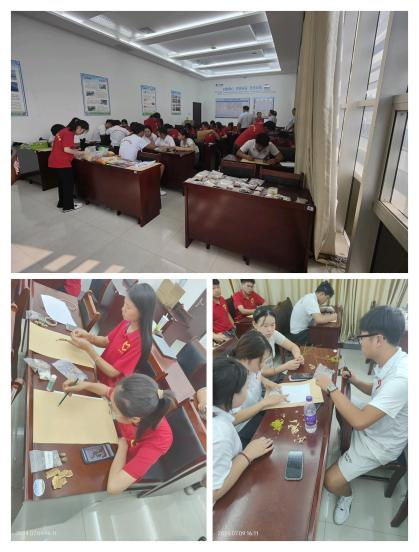 为了弘扬中医药文化,推动传统艺术与现代创意结合,7月9日下午,赴振东中药产业学院实践队组织开展了中药材为主题的艺术创新实践活动。