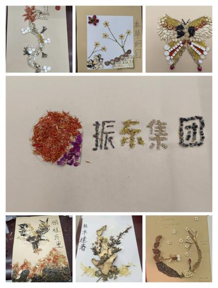 活动伊始,振东集团的指导老师精心为实践队员挑选了数十种具有代表性、形态各异、色彩丰富的中药材,如枸杞、当归、黄连、金银花等。这些药材不仅具有药用价值,而且其形态和色彩都具有较高的艺术表现力,队员们经过指导后,开始了中药材装饰画的创作,大家纷纷发挥想象力,将药材按照形态、色彩和纹理进行组合搭配,创作出一幅幅独具特色的拼贴作品。最后,中药材装饰作品《鹏程万里》《蝴蝶》《枯木逢春》《中国龙》《振东集团》《本草纲目》《杏林春暖》得到了大家的一致好评。