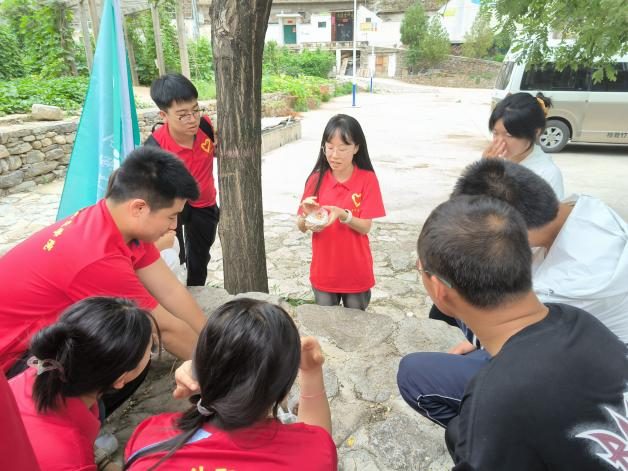 “仙境闲寻采药翁,草堂留话一宵通。”采集中药、制作标本是我们团队的一大特色。一大早实践队员们就已备好行囊踏上了上山采药的路途。采药过程中,张孟容老师一边演示如何采摘植物和制作标本,一边向队员们仔细介绍每棵采集草药的名称、特征及其用途。队员们仔细观察,专心听讲,积极地相互探讨各类草药的习性,从中加深了许多书本上的草药内容知识,同时也学到了许多书本上没有的知识。