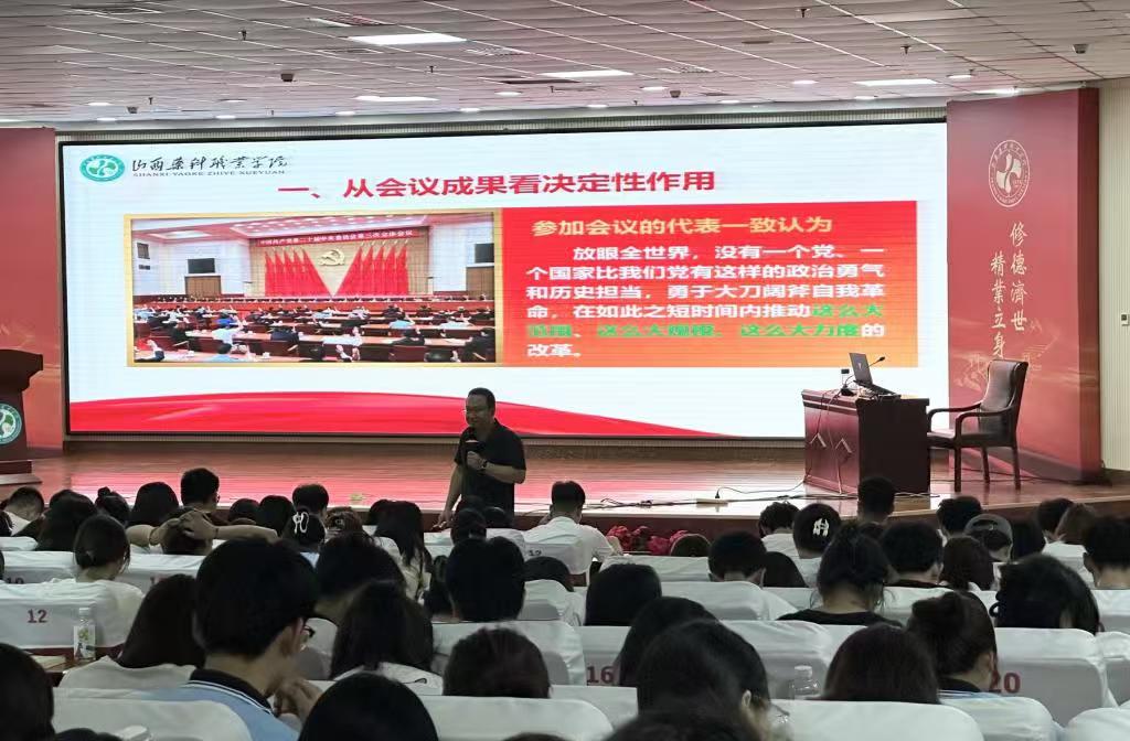 学院思想政治理论教学研究部主任任俊峰以《党的二十届三中全会精神》为题作专题解读,他从党的二十届三中全会召开的重大理论意义、实践意义方面为同学们阐述了进一步全面深化改革、推进中国式现代化“怎么看”“怎么干”“怎么抓落实”等问题。引导广大青年学生努力融入中国式现代化建设新征程。