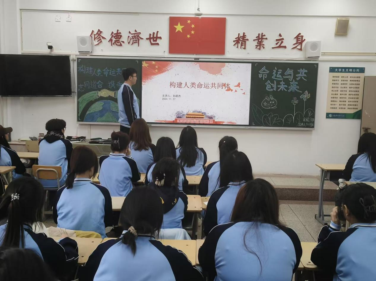 为深化团结协作意识,传播人类命运共同体的理念,进一步提升同学们的全球视野和责任担当。2024年11月27日,食品系各班级开展“构建人类命运共同体—志同道合携手行 命运与共创未来”主题团日活动。