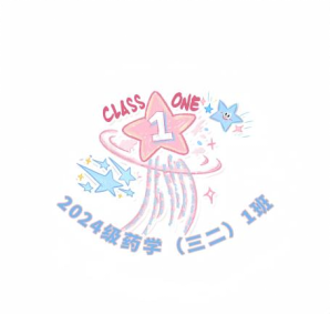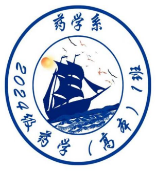 班徽为圆形边框,寓意团结、完整之意,说明药学1班是一个团结的集体;