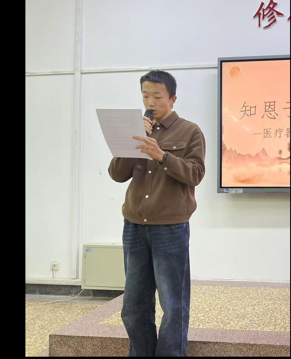为培养优良教育学风,共创职业教育新篇章,11月27号下午,医疗器械系分团委召开系“知恩于心,感恩于行”资助育人主题会议。出席本次会议的有医疗器械系党总支书记柴红萍,系主任徐荣辉以及2024级全体学生,会议由系分团委书记闫梦苗主持。