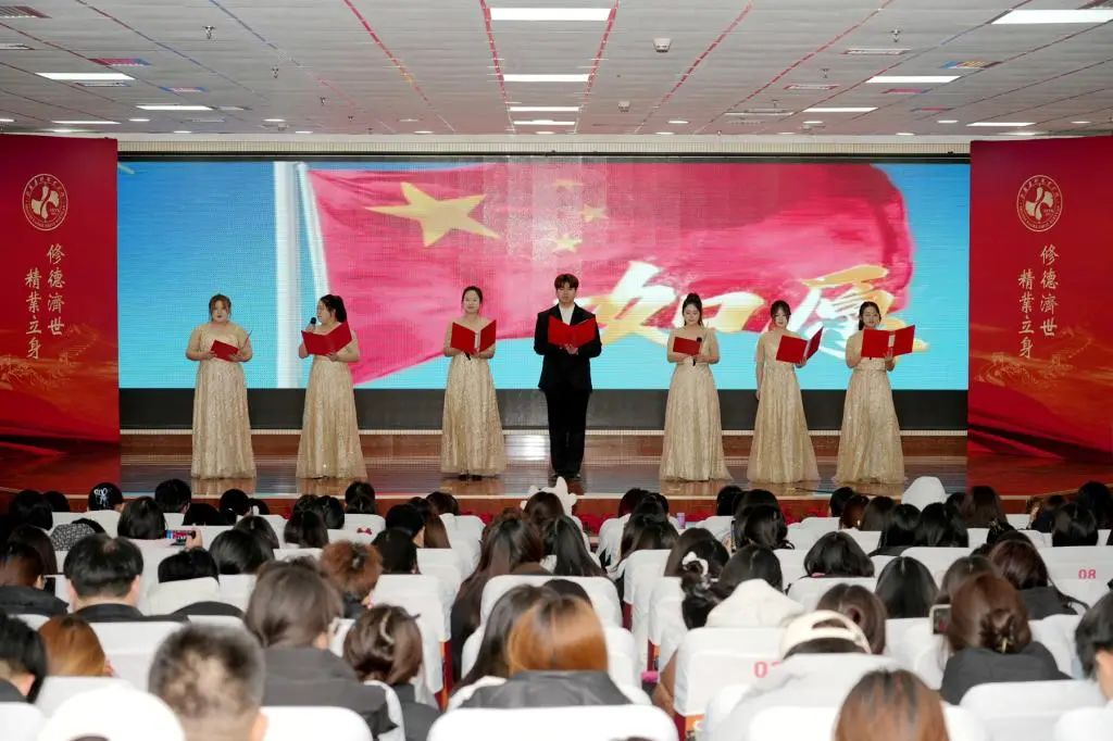 12月18日,学院在综合楼报告厅举办“挺膺筑梦青春启航”——2024年迎新年文艺展演。院领导、有关部门负责人、各系分团委书记及学生代表370余人齐聚一堂,共同观看演出。
