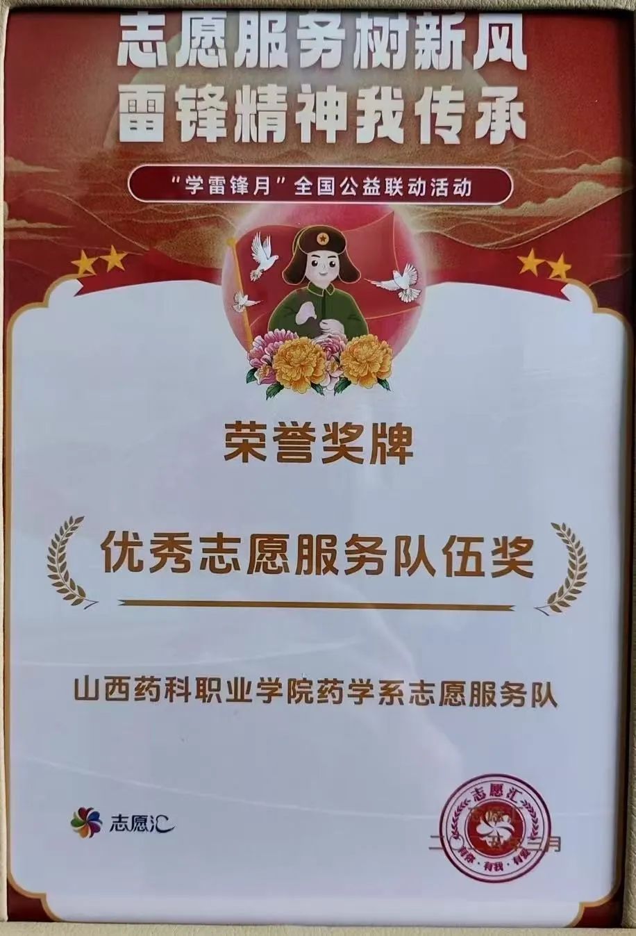 此次荣誉证书的获得,是对药学系学子志愿服务成果的高度认可,也是对他们传承雷锋精神的有力鼓舞。这份荣誉不仅彰显了药学系学子的责任与担当,更激励着更多同学投身志愿服务。未来,药学系分团委将继续以雷锋精神为指引,开展形式多样的志愿活动,引导学生将专业知识与志愿服务相结合,让雷锋精神在新时代绽放更加璀璨的光芒。