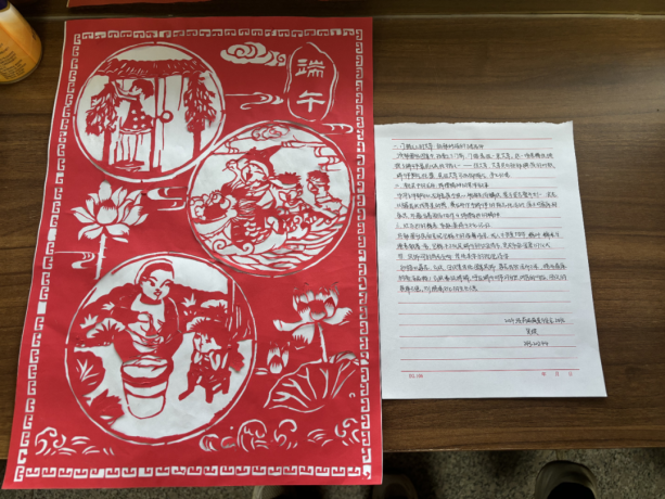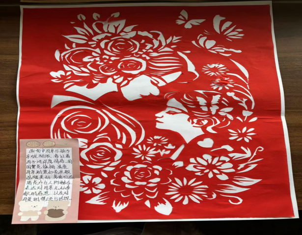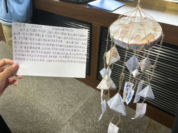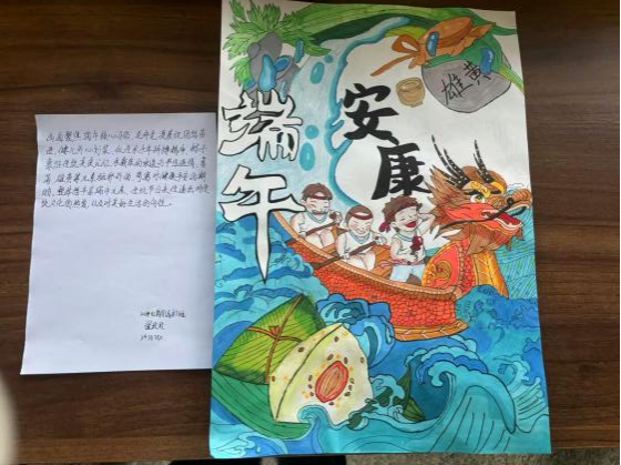 在此次主题创作活动中,同学们围绕端午与母爱主题积极创作,用色彩斑斓的画笔描绘龙舟竞渡,传递拼搏精神;以圆形为基础的端午节风铃寓意圆满和谐,把粽子当作风铃坠饰寓意一举高“粽”,借铃音传递端午祝福与对未来的期许;剪纸作品则以细腻线条勾勒出母亲温柔的身影。在“观《山地玫瑰》,悟母爱无疆”活动中,同学们认真观看母亲节微电影后,纷纷结合自身经历撰写感想,分享生活中母亲为自己准备早餐、深夜陪伴学习等温暖故事,探讨将传统文化传承与感恩母爱融入日常的具体方式,一篇篇饱含深情的文字,生动诠释了对母亲的感恩与敬意。