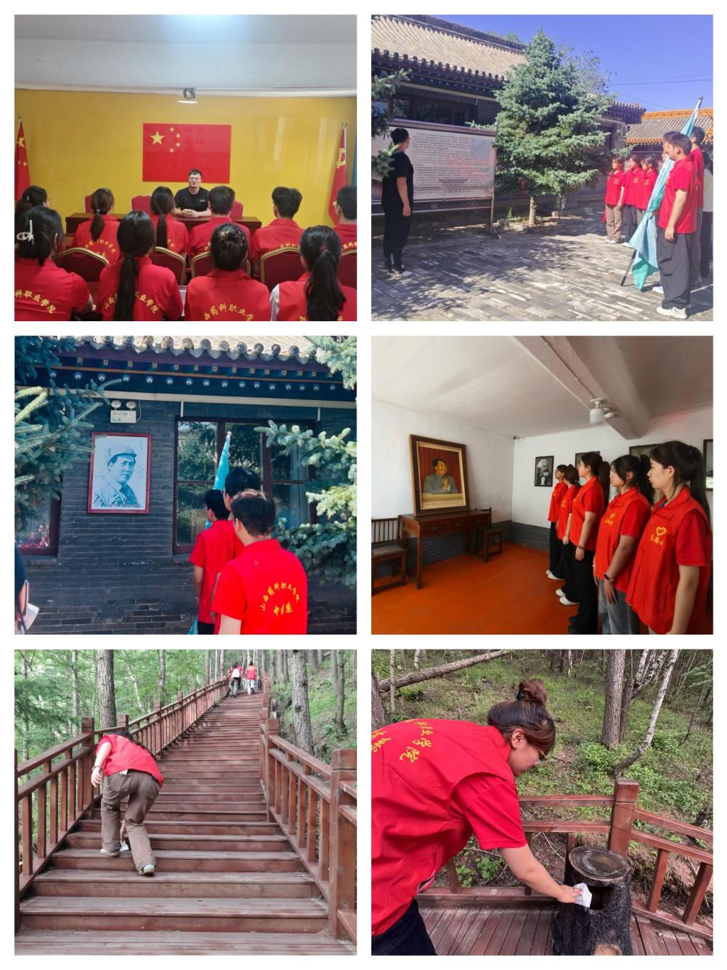 从红色基地汲取精神力量后,实践队马不停蹄前往神池县西岭村林地,开展中药标本采集和环保志愿服务。大家手持工具,顶着烈日清理山道周边的纸屑、塑料瓶等垃圾,汗水浸透衣衫却无人叫苦。穿梭在绿意中的忙碌身影,既是对“绿水青山就是金山银山”理念的践行,更是青年学子以实际行动传承党“全心全意为人民服务”宗旨的生动写照——正如104年来,党始终将人民需求放在首位,新时代青年亦以点滴之力守护群众美好生活。