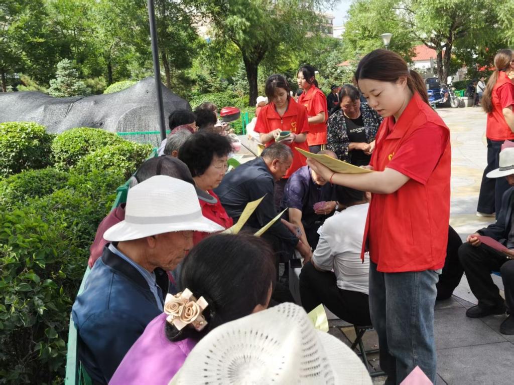 在开展中医养生知识宣传的同时,实践队师生还积极进行学院招生宣传工作。三位老师向社区居民和广场市民详细介绍了山西药科职业学院的办学历史、专业设置、师资力量和教学特色。重点围绕中药学、药学等专业,深入讲解课程体系、实训条件和校企合作模式,展示学院“厚德尚能、励志笃行”的育人理念和丰硕的办学成果。面对家长和学生关于招生政策、志愿填报、就业前景等方面的疑问,师生们结合自身学习和实践经验,进行耐心细致的解答,帮助他们全面了解学院的人才培养模式和发展前景。