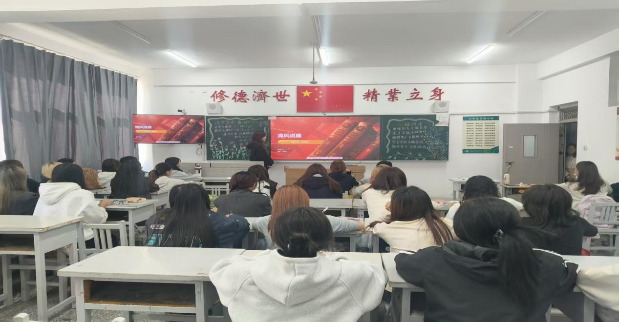 活动以PPT讲解为主要形式,主持人围绕“廉洁是什么”展开,用大学生熟悉的校园场景举例——从奖学金评定的公平公正,到学生干部履职的公私分明,将抽象的廉洁概念转化为身边可感可知的行为准则,让同学们快速理解廉洁与自身的紧密联系。
