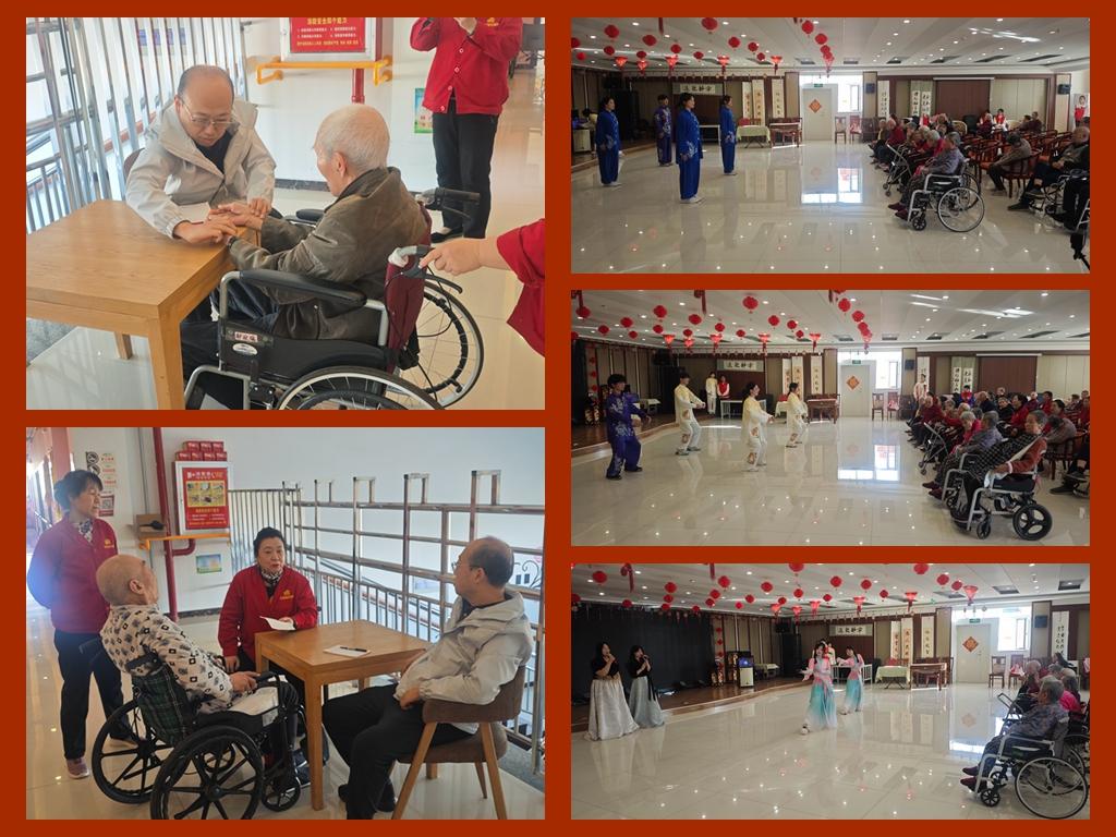活动现场暖意融融,师生志愿者们分工明确、各司其职,用专业服务与暖心陪伴诠释志愿初心。中药系赵昌老师立足中医药专业优势,为老人们开展公益中医义诊,细致地为老人们把脉问诊,针对老年人常见的慢性病调理、日常康养等问题逐一答疑解惑,同时结合老年群体身体特点,现场宣讲中医养生保健常识、适宜的食疗养生方与简易养生穴位按摩方法,把专业的中医药健康服务送到老人身边,切实守护老年群体的身体健康。学生志愿者们则精心准备了文艺节目,为老人们献上了一场温馨的演出。悠扬动听的歌曲、轻快活泼的舞蹈、刚劲有力的武术表演轮番登场,精彩纷呈的节目让老人们笑容满面,现场掌声、喝彩声不断。演出结束后,同学们跟老人们进行了亲切互动,开展了健身气功现场教学,为老人们送去了温暖和欢乐。