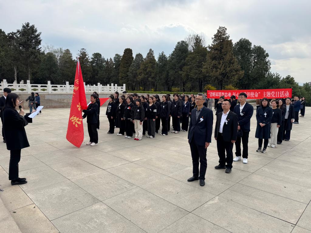 在庄严肃穆的烈士纪念碑下,全体党员面向党旗重温入党誓词,字字铿锵、句句千钧;全体团员青年面向团旗庄严宣誓,重温入团誓词,以青春之名立下传承红色薪火、争做时代新人的坚定诺言。誓言回荡在陵园上空,既是向革命先辈的庄严告慰,也是新时代青年听党话、跟党走的青春告白。