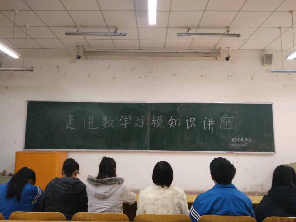 2016年11月28日下午,由数学建模协会举办的“走进数学建模”活动在东教学楼二层二阶成功举行。参加此次活动的是对数学建模有着浓厚兴趣的学生。在讲解相关数学建模知识的时候同学们都认真倾听,并在随后的知识问答环节积极踊跃的参与答题。
