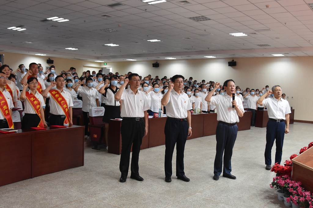 6月30日上午,学院在综合楼一层报告厅隆重召开“两优一先”表彰大会,院党委书记张瑞芳同志领誓入党誓词,并作题为《不忘初心学党史、牢记使命勇担当,奋力书写新时代山西药院高质量发展新篇章》的党史学习教育专题党课。院党委副书记、院长张震云主持会议,全体党员参加会议。