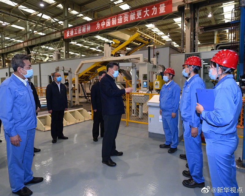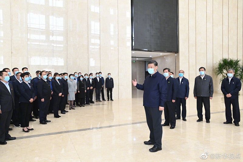 习近平总书记12日在太原考察调研。他先后来到山西转型综合改革示范区政务服务中心、太钢不锈钢精密带钢有限公司、汾河太原城区晋阳桥段,了解传统制造业转型升级、企业复工复产、生态环保和污染防治等情况。(张晓松、朱基钗、李学仁、谢环驰、刘彬)