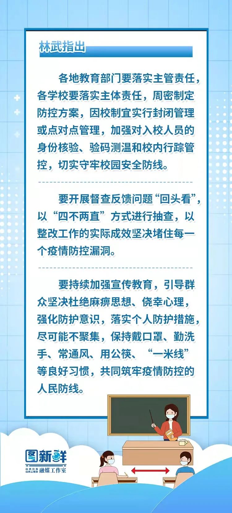 林武就学校疫情防控、疫情防控督查“回头看”、加强个人防控等提出具体要求。