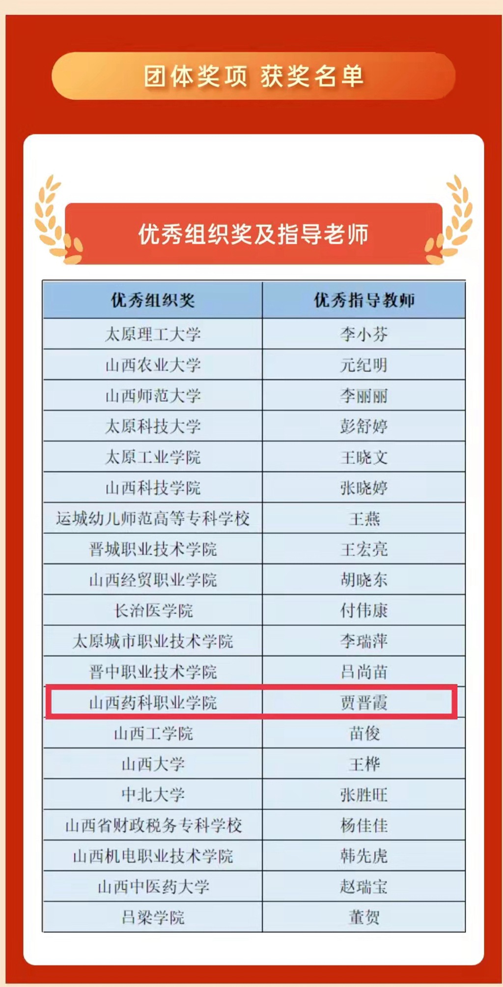近日,由山西省高校思想政治教育研究会主办,山西农业大学马克思主义学院承办,中科软股教育科技(北京)股份有限公司协办的山西省中科杯“喜迎二十大·青春逢盛世·奋斗正当时”主题教育活动圆满落幕。我院师生积极参与,在活动中斩获佳绩。其中,思政部贾晋霞老师荣获教工组三等奖;思政部常宇、吴若男、弓宇琛、陈琪、药飞飞老师,药学系王小露老师,办公室杨小莉老师荣获教工组优秀奖。学院荣获团体奖优秀组织奖。