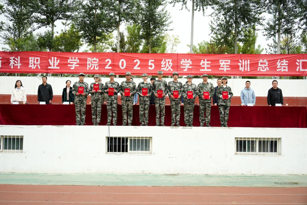 军训科目展示结束后,院领导为2025级新生军训先进集体和个人代表颁发奖状和荣誉证书,并向承训部队赠送锦旗。