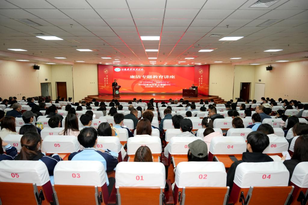 为深入学习贯彻习近平总书记关于党的自我革命的重要思想,持续推动学院全面从严治党向基层延伸,11月12日下午,学院邀请中共山西省委党校(山西行政学院)副教授王卫红来校作廉洁专题讲座。学院领导、副科级及以上党员干部、全体教职工党员、学生入党积极分子代表共300余人参加讲座。