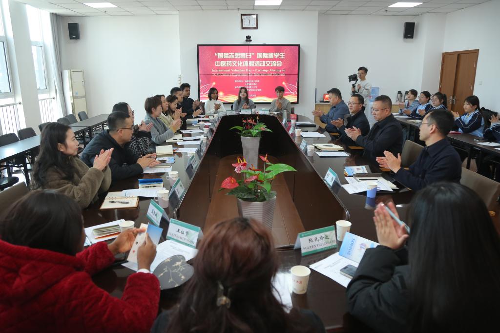 12月5日“国际志愿者日”当天,由省委社会工作部、山西省外事办牵头指导的国际留学生中医药文化体验活动在我院举行,省外事办涉外管理处处长李敏、美洲大洋洲处处长韩婧等相关领导,学院党委副书记、院长关伟及相关部门负责人出席活动。来自尼日利亚、越南、孟加拉国等国的太原理工大学留学生代表受邀参加,通过沉浸式参观体验与座谈交流,搭建起中外文化沟通的友好桥梁。