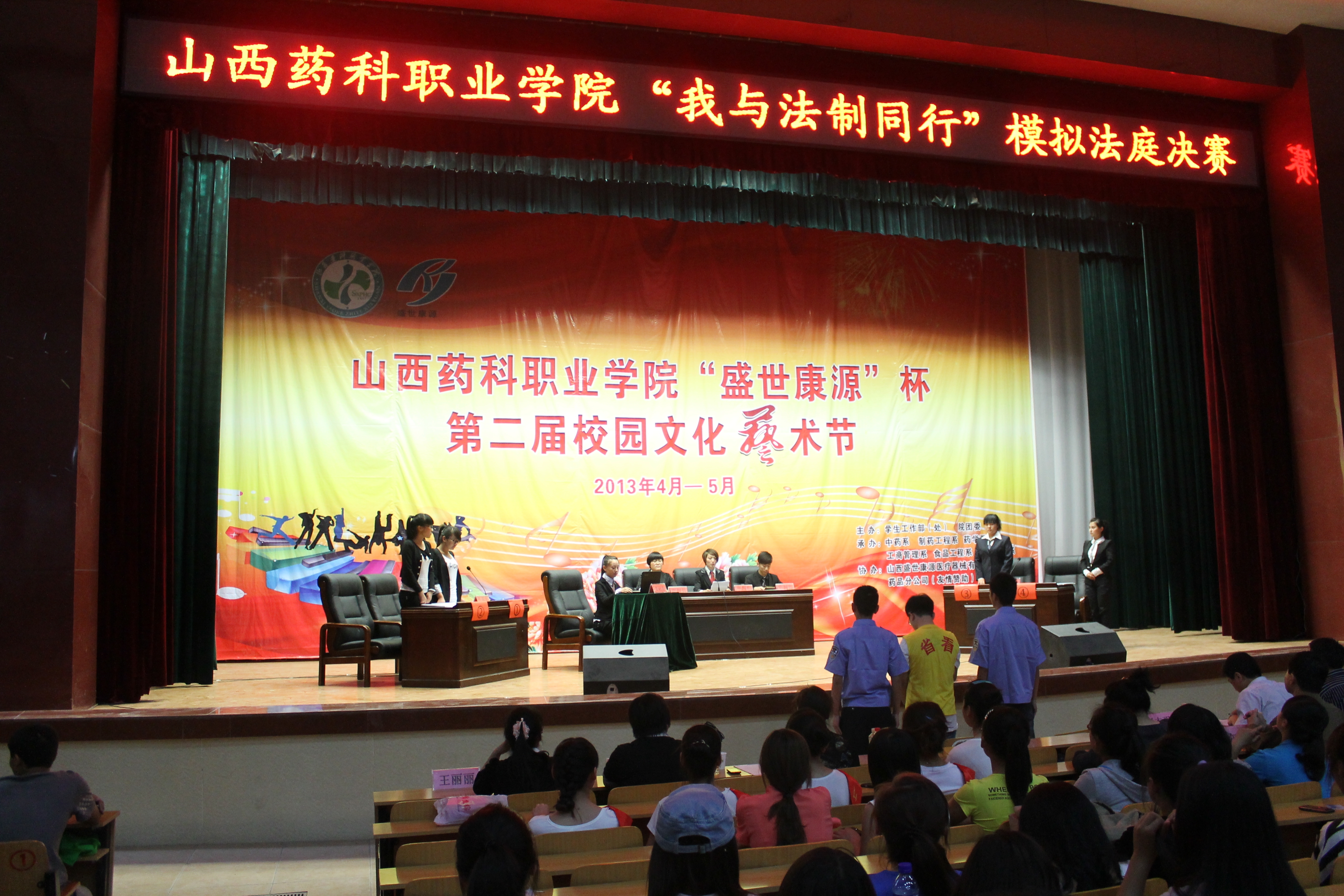 为引导全院广大青年自觉学法、尊法、守法、用法,带动和促进学院法制宣传教育的深入开展,2013年5月15日晚,由工商管理系承办的学院“盛世康源”杯第二届校园文化艺术节“我与法制同行”模拟法庭决赛在学院大礼堂拉开帷幕。
