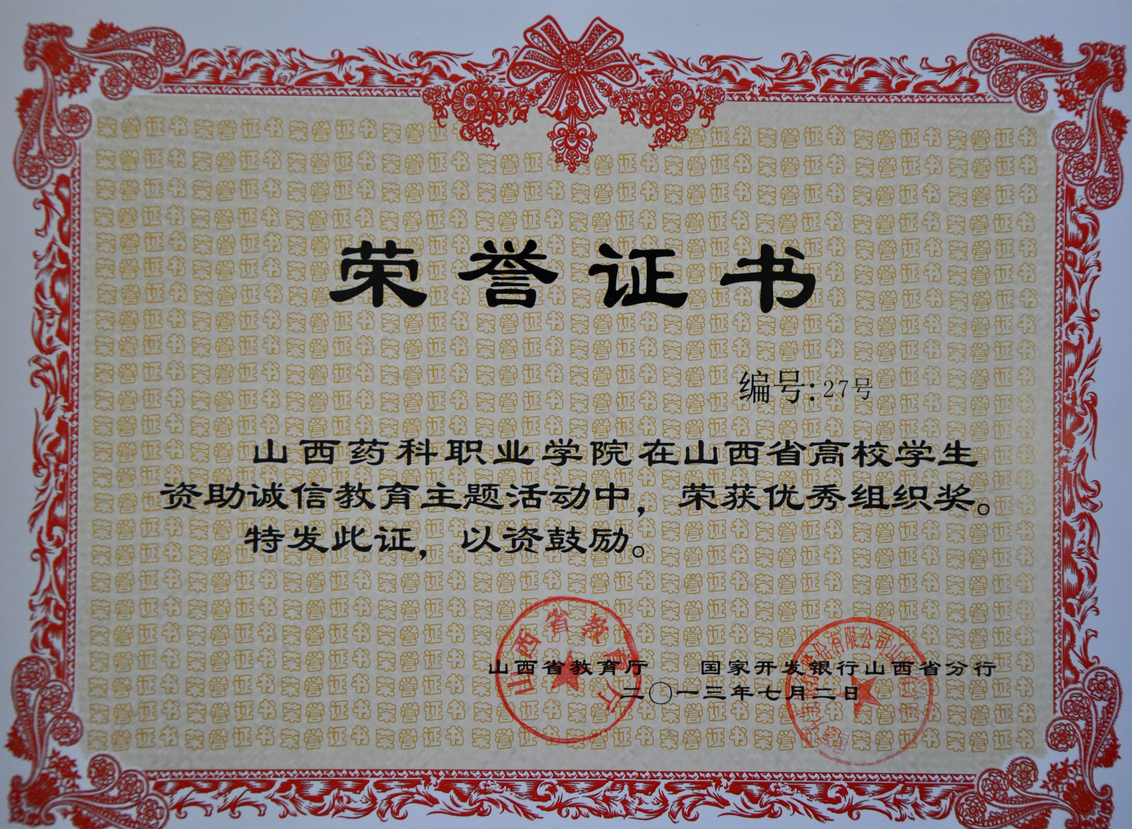 2013年7月2日下午,由山西省教育厅主办的“山西省高校学生资助诚信教育活动”在山西省歌舞剧院落下帷幕,我院荣获山西省高校学生资助诚信教育主题活动“优秀组织奖”,李杨、崔艳、闫兰英等三名同学分获单项优秀奖。