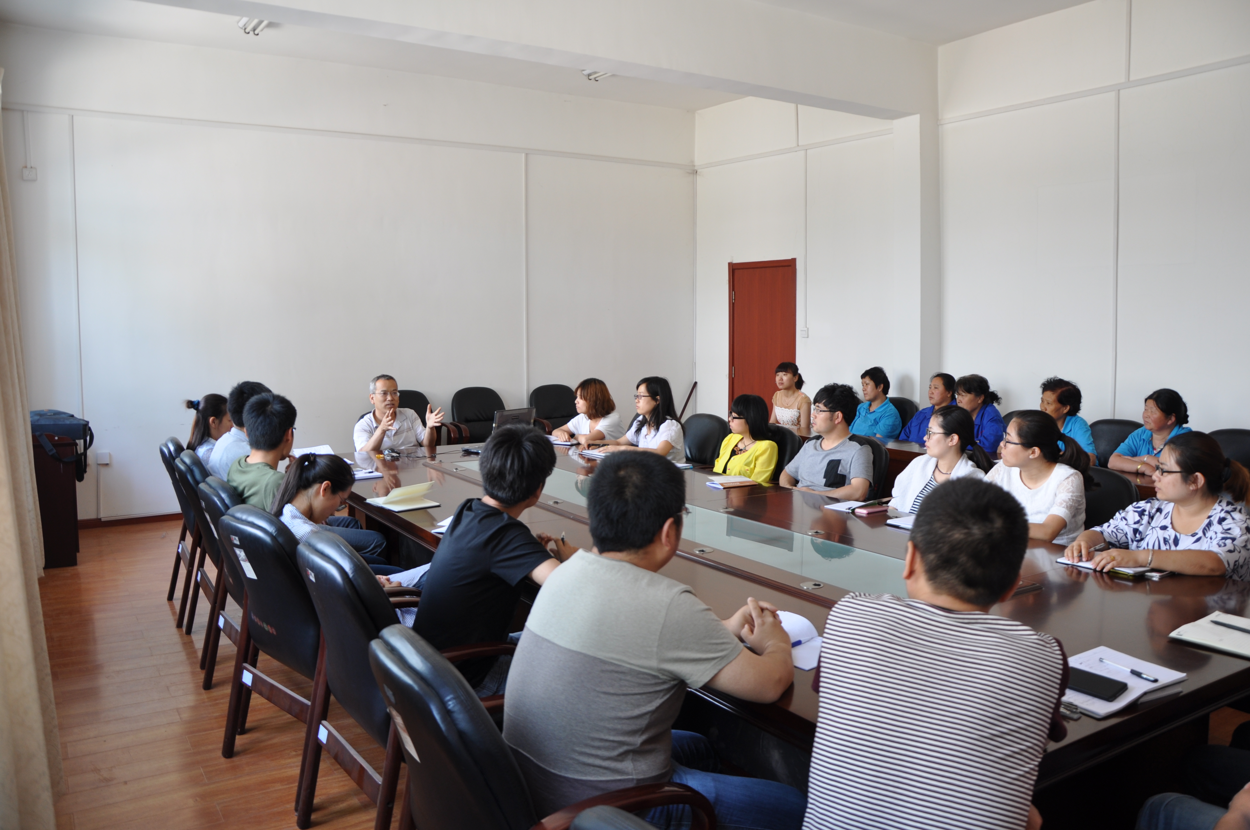 2015年6月11日,学生工作部(处)在西教学楼一层会议室举办心理学培训,全体学生公寓管理员列席会议。