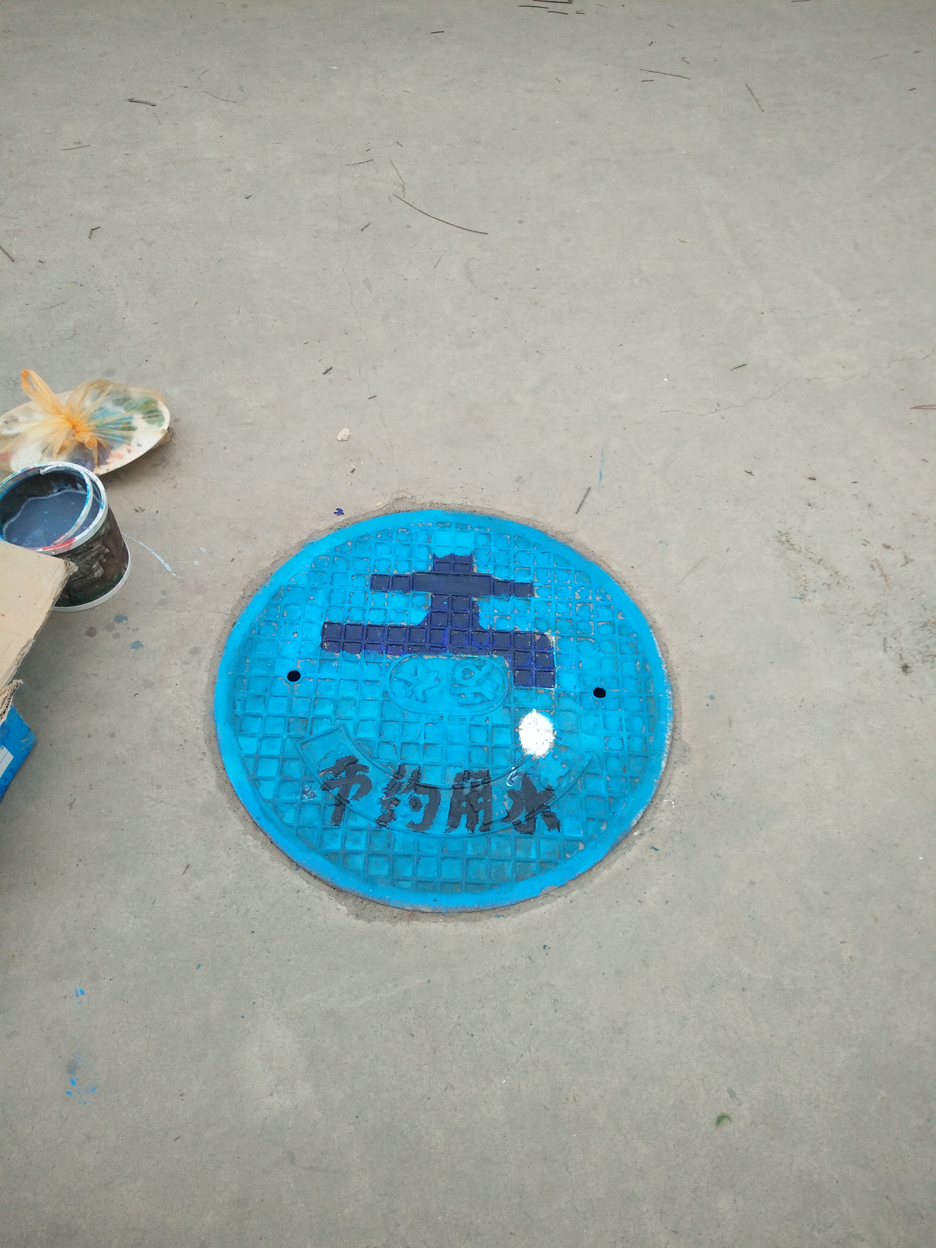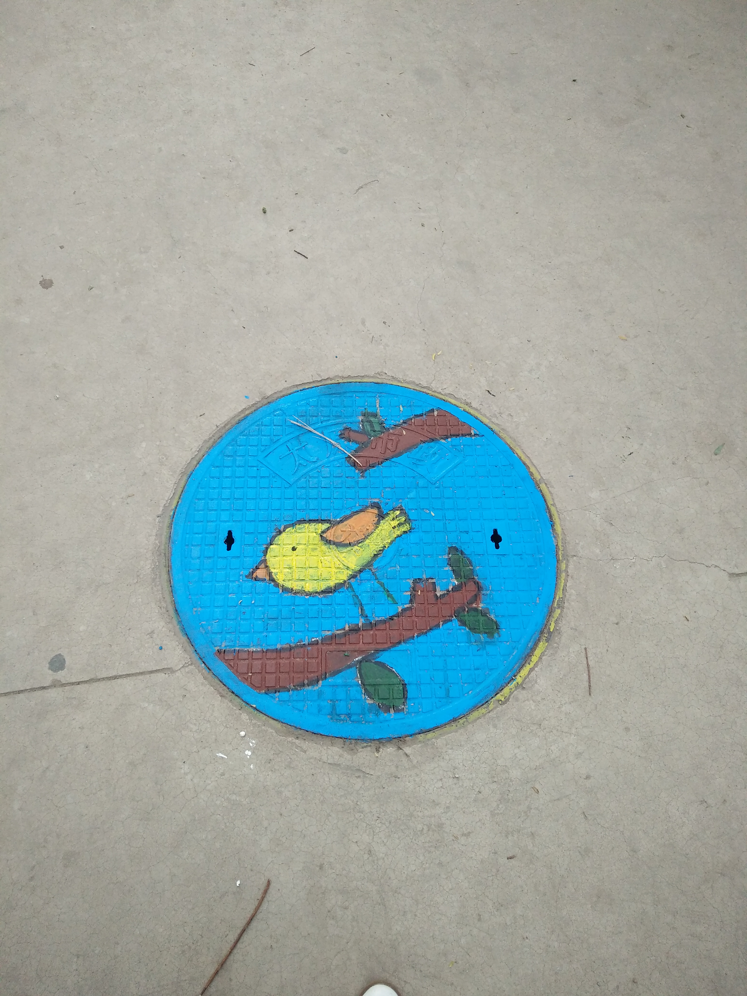 院学生会宿建部文艺小组在举办活动时,路过的同学纷纷表示赞扬,积极维护美化过的井盖,并拍照留念。