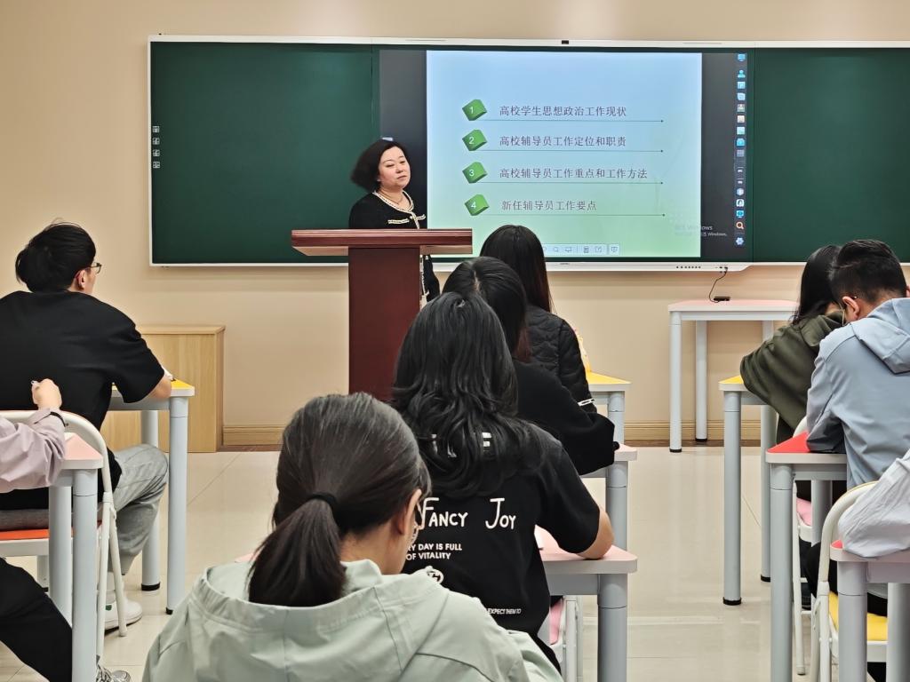 2025年4月16日,思政部教师郭燕围绕“以思想作为引领,扎实做好育人工作”主题开展培训第二讲。她从高校学生思想政治工作现状、辅导员工作定位与职责、工作重点与工作方法、新任辅导员工作要点等四个维度,阐释了新时代高校辅导员的职责内涵与实践路径,为做好育人工作提供了切实可行的行动指南。